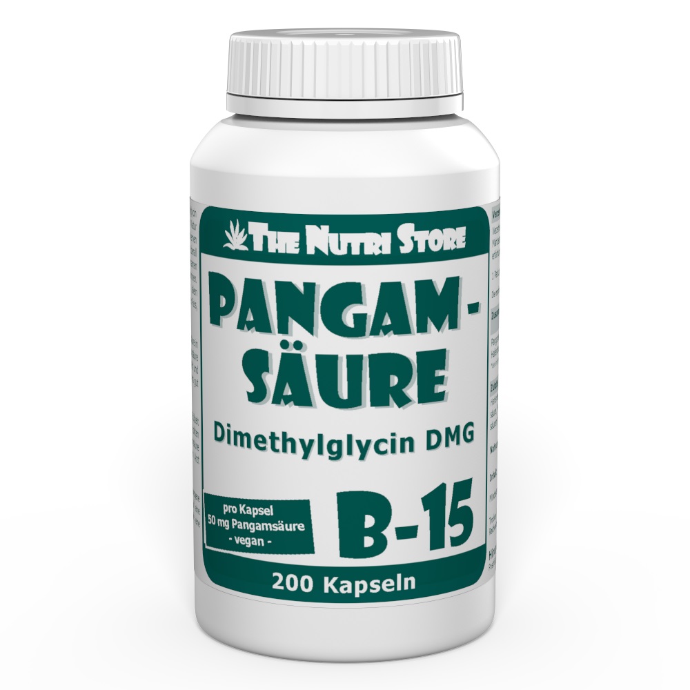 Pangamsäure, auch als Vitamin B15 oder N,N-Dimethylglycin (DMG) bezeichnet, ist eine vitaminähnliche, in der Natur vorkommende Substanz, die erstmals in Aprikosenkernen entdeckt wurde. Pangamsäure (von griechisch pan = überall und gami = Samen) ist überall auf der Welt in Pflanzensamen zu finden, häufig in Verbindung mit anderen B-Vitaminen. Natürliche Quellen für Pangamsäure sind vor allem Bierhefe, Reiskleie, Aprikosenkerne, Erbsen, unpolierter Reis, Kürbiskerne, Sesamsaat und Vollkornprodukte.